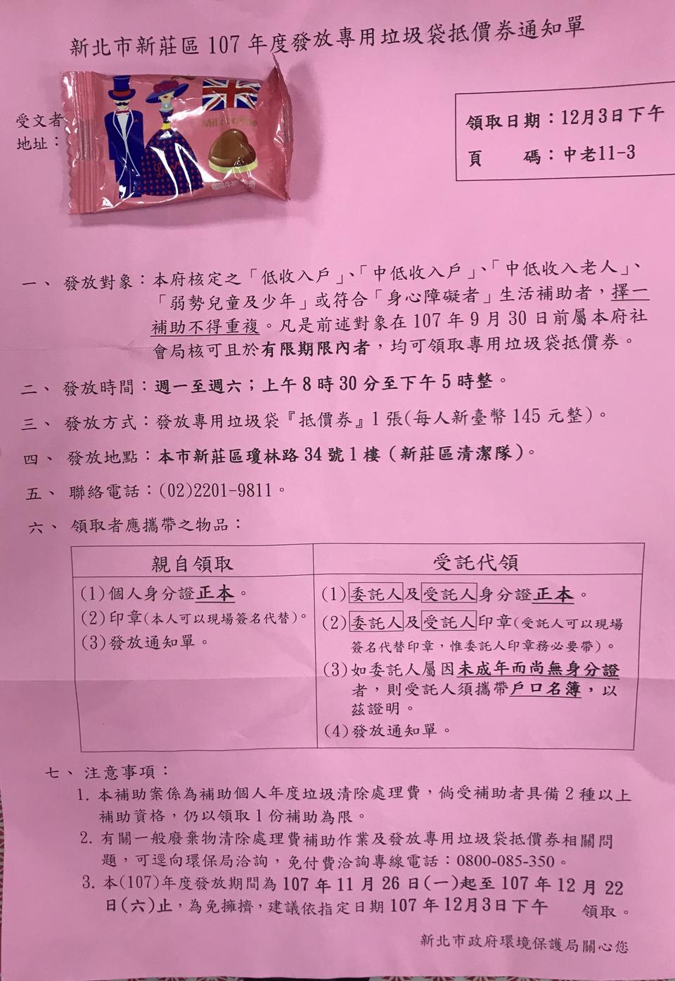 貼心服務~代領垃圾袋抵價卷